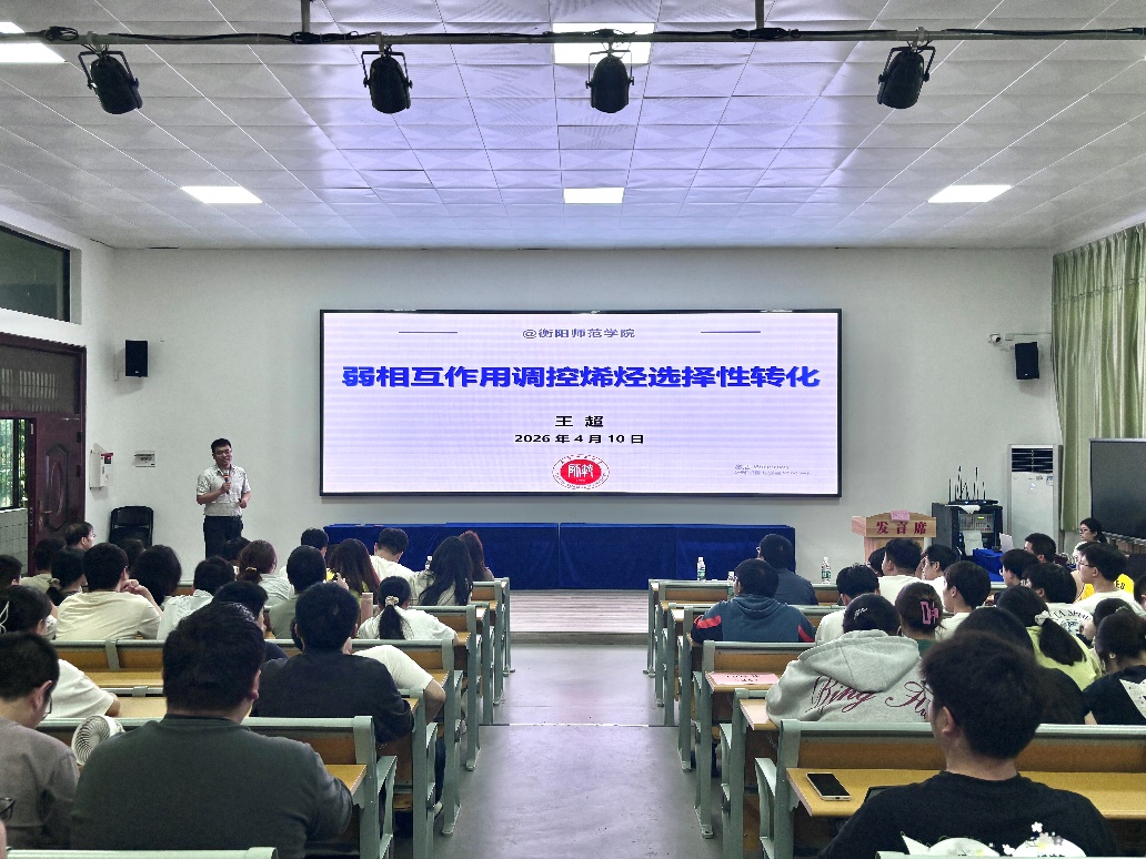 2026年4月10日下午,湖南大学赵万祥教授、冯见君教授与天津师范大学王超教授应邀来我院访问,并在学奎楼104会议室分别作了题为“催化迁移硼化”、“面向含苯药用分子成药性优化的双环丁烷环加成化学”和“弱相互作用调控烯烃选择性转化”的学术报告。报告会由我院副院长李文艺主持,部分专任教师、硕士研究生以及本科生代表到场聆听。