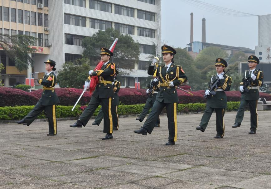 晨光熹微,当新世纪广场被柔光铺满时,同学们已列队整齐。教导队队员身姿挺拔、目光坚毅,迈着铿锵有力的步伐护卫着国旗走向升旗台。国歌嘹亮庄严奏响,五星红旗冉冉升起,庄严肃穆的氛围在广场上悄然弥漫。这一刻,青春与使命同频,奋斗践初心的时代责任感,在每个同学心中长燃不熄。