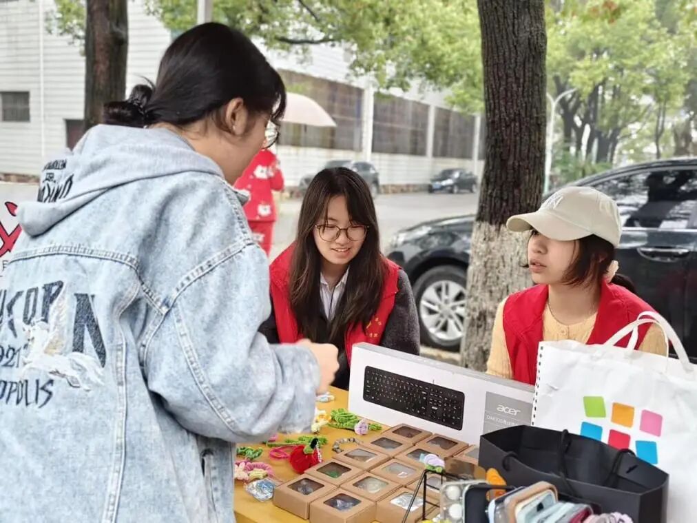 活动期间,志愿者们提前抵达指定区域布置摊位,将书籍、文具、生活用品等各类义卖物资摆放得井然有序。其中我院社员亲手制作的扭扭棒手作、环保手工皂及精美树脂饰品等作品格外引人注目。在摊位前,志愿者们热情地向过往师生介绍义卖物品,宣传活动宗旨与公益意义。师生们纷纷慷慨解囊,挑选心仪好物,以实际行动支持公益事业。
